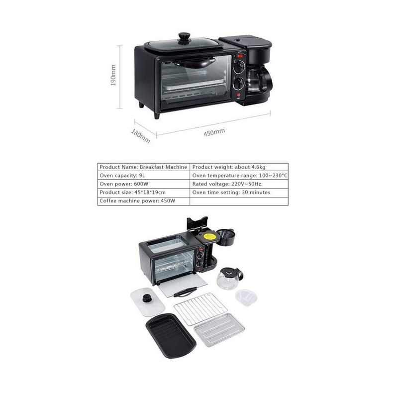 Préparez simultanément vos tartines croustillantes, votre café chaud et vos viennoiseries ou œufs grâce à ses fonctions intégrées. Idéale pour les cuisines compactes, les studios, les dortoirs ou même les bureaux, cette machine est la solution parfaite pour un petit-déjeuner complet sans effort.
