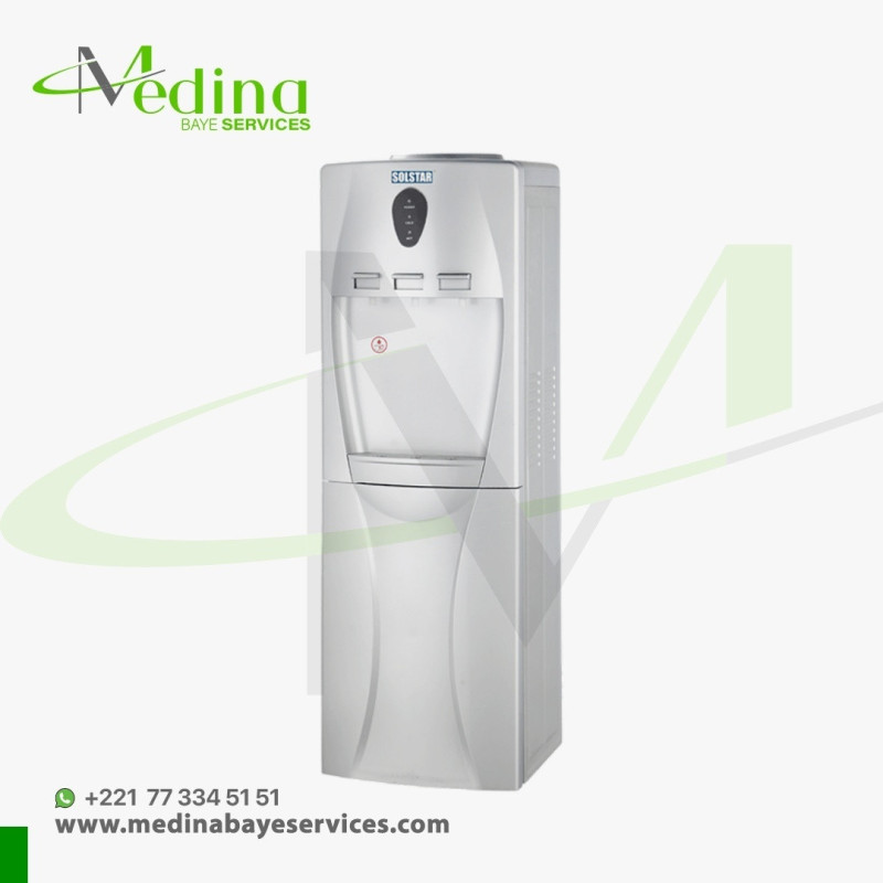 Apportez élégance, performance et confort à votre espace avec la Fontaine Diffuseur d’eau Solstar WD64C-SLVSS, un distributeur d’eau au design moderne et raffiné. Conçue pour fournir à la fois de l’eau chaude et froide instantanément, elle répond aux besoins quotidiens, que ce soit pour préparer un café, un thé ou se rafraîchir avec un verre d’eau glacée. Son corps robuste en finition inox argentée lui confère une allure professionnelle tout en assurant une excellente durabilité face à l’usage intensif. Grâce à ses robinets ergonomiques et sa conception intuitive, l’utilisation est simple et rapide. Sa capacité élevée garantit une disponibilité constante en eau, tandis que sa technologie interne maintient la température de l’eau de manière efficace et économe en énergie. Compacte mais performante, elle s’intègre aussi bien dans les bureaux, halls d’accueil, commerces que dans les foyers exigeants. Avec la Solstar WD64C-SLVSS, vous choisissez une solution pratique, hygiénique et élégante pour un accès à l’eau de qualité en toute circonstance.
