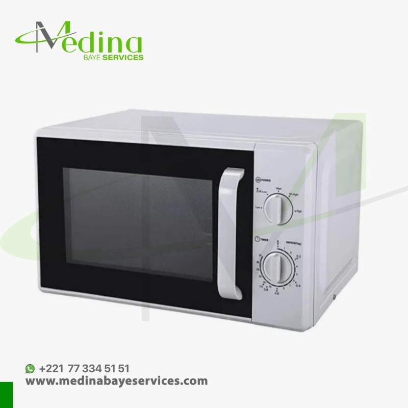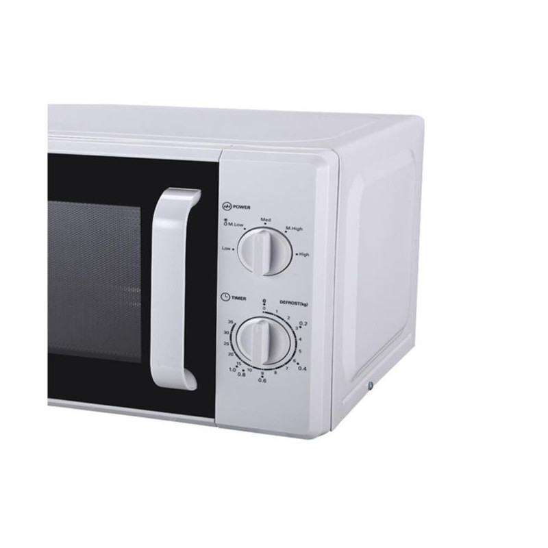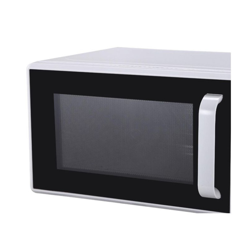 Son design blanc épuré avec poignée ergonomique et porte à ouverture latérale s’intègre parfaitement dans tout type de cuisine. Compact mais efficace, il est idéal pour les petites surfaces, les bureaux ou comme micro-ondes d’appoint.