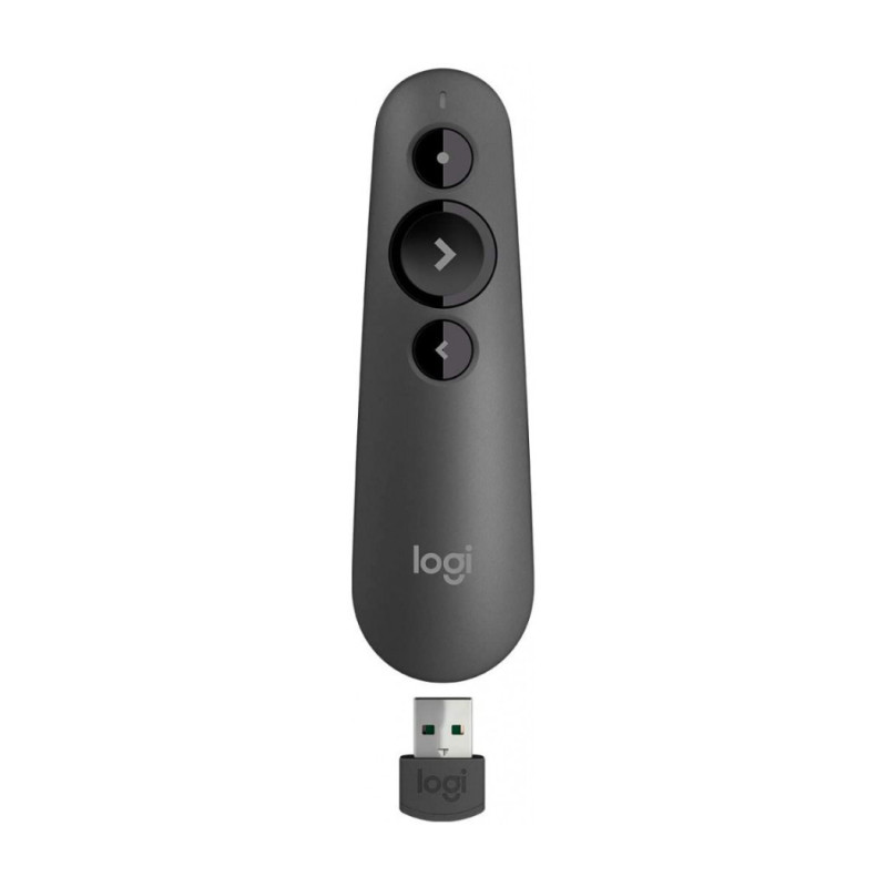 Logitech présente la télécommande R500, une télécommande de présentation prête à l'emploi qui vous permet de parcourir des diapositives et d'utiliser un laser jusqu'à 20 mètres de portée. Faites votre présentation avec aisance et confiance grâce à la conception à trois boutons caractéristique et au maintien confortable et sûr de la télécommande R500. Vous pouvez personnaliser les boutons, vérifier la longévité de la batterie et définir une minuterie à l'écran dans l'application Logitech Présentation.