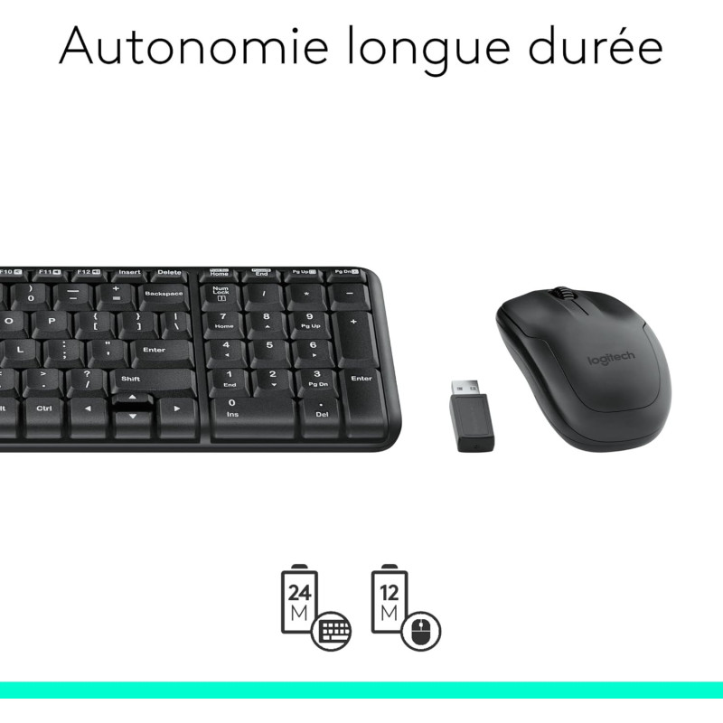 Clavier et souris sans fil Logitech MK220 Français Noir AZERTY