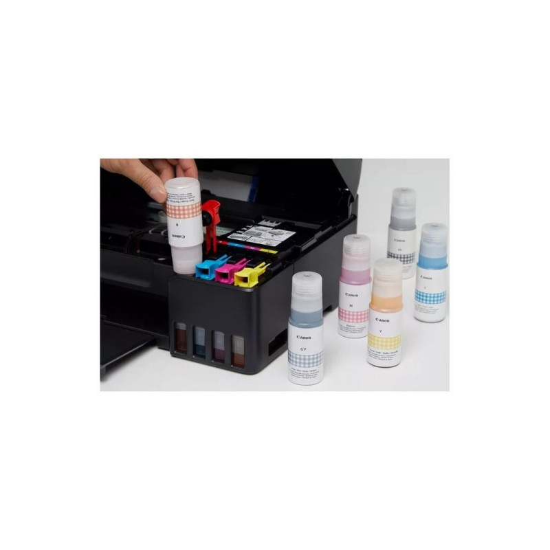 L’un des grands atouts de la G540 est son système de réservoirs rechargeables, qui permet non seulement une impression économique, mais aussi un volume d’impression très élevé, parfait pour un usage intensif. Un seul jeu de bouteilles d’encre permet d’imprimer jusqu’à 3 800 photos au format 10 x 15 cm, ce qui élimine le stress des recharges fréquentes et offre un confort d’utilisation inégalé. Le système de remplissage est conçu pour être propre, rapide et sans erreur, avec des bouteilles codées pour chaque couleur.
