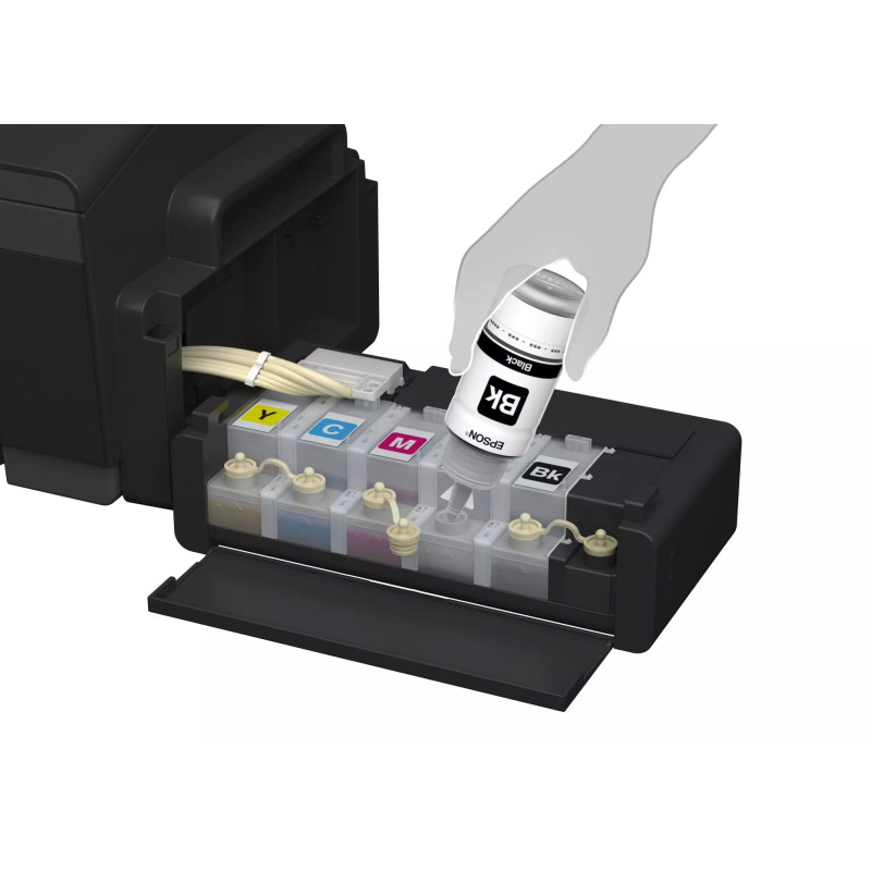 - Encre pigmentée noire + encres dye CMJ (5 réservoirs – C, M, J, N, N2)