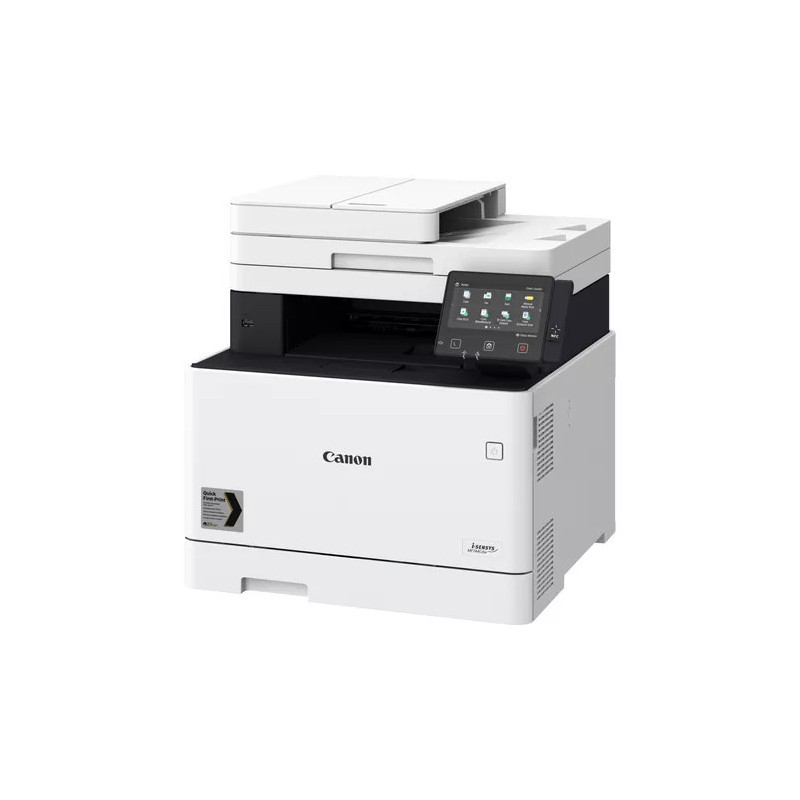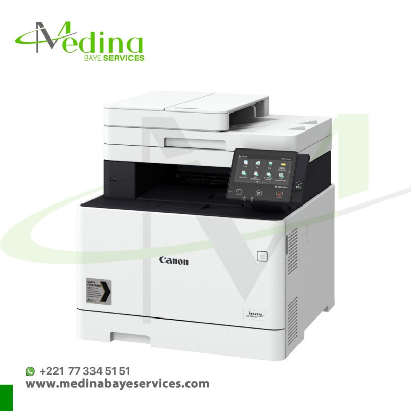 Canon i-SENSYS MF744Cdw : imprimante laser couleur multifonction rapide (27 ppm), Wi-Fi, NFC, impression mobile, recto verso auto, écran tactile 12,7 cm. Idéale pour PME, elle combine impression, copie, scan et fax avec qualité pro, sécurité avancée et connectivité complète (USB, Ethernet, AirPrint, Google Cloud). Productivité et performances réunies.