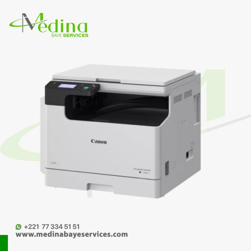 Photocopieur CANON multifonction 3en1 A3 IR-2224 – Avec toner – Fonctions principales Impression, copie et numérisation – Résolution d’impression (ppp) : Jusqu’à 1200 × 1200 – Vitesse d’impression : jusqu’à 24 ppm (A4), jusqu’à 12 ppm (A3), jusqu’à 11 ppm (A4R) – Écran tactile monochrome de 3,5 pouces – 1 port USB 2.0 – Capacité d’alimentation papier (A4, 80 g/m²) : Standard : 350 feuilles – Capacité de sortie papier (A4, 80 g/m²) : Standard : 250 feuilles – Dimensions (L × P × H): 627× 589× 502mm –